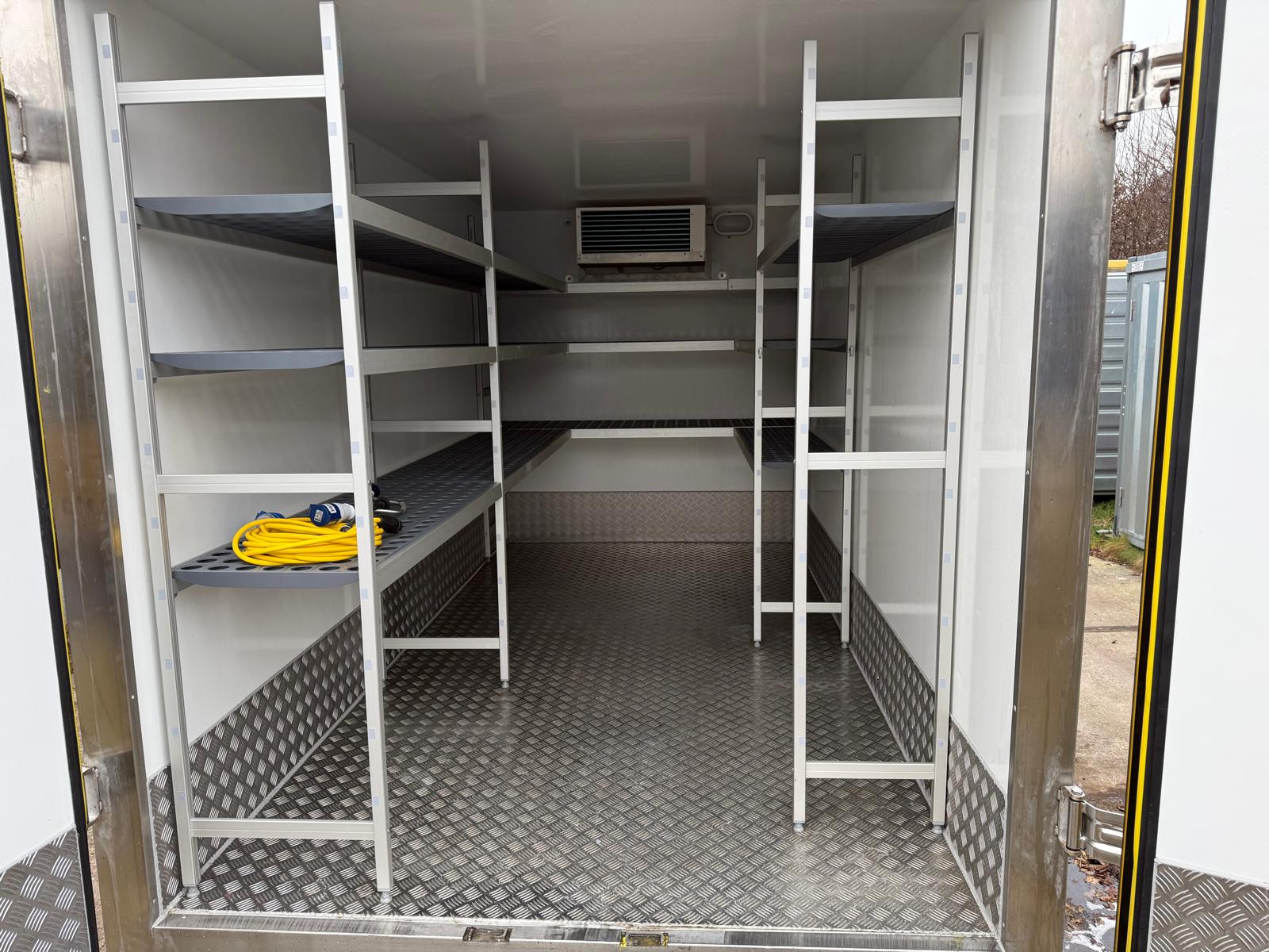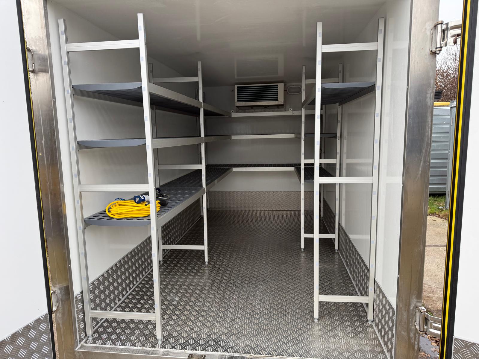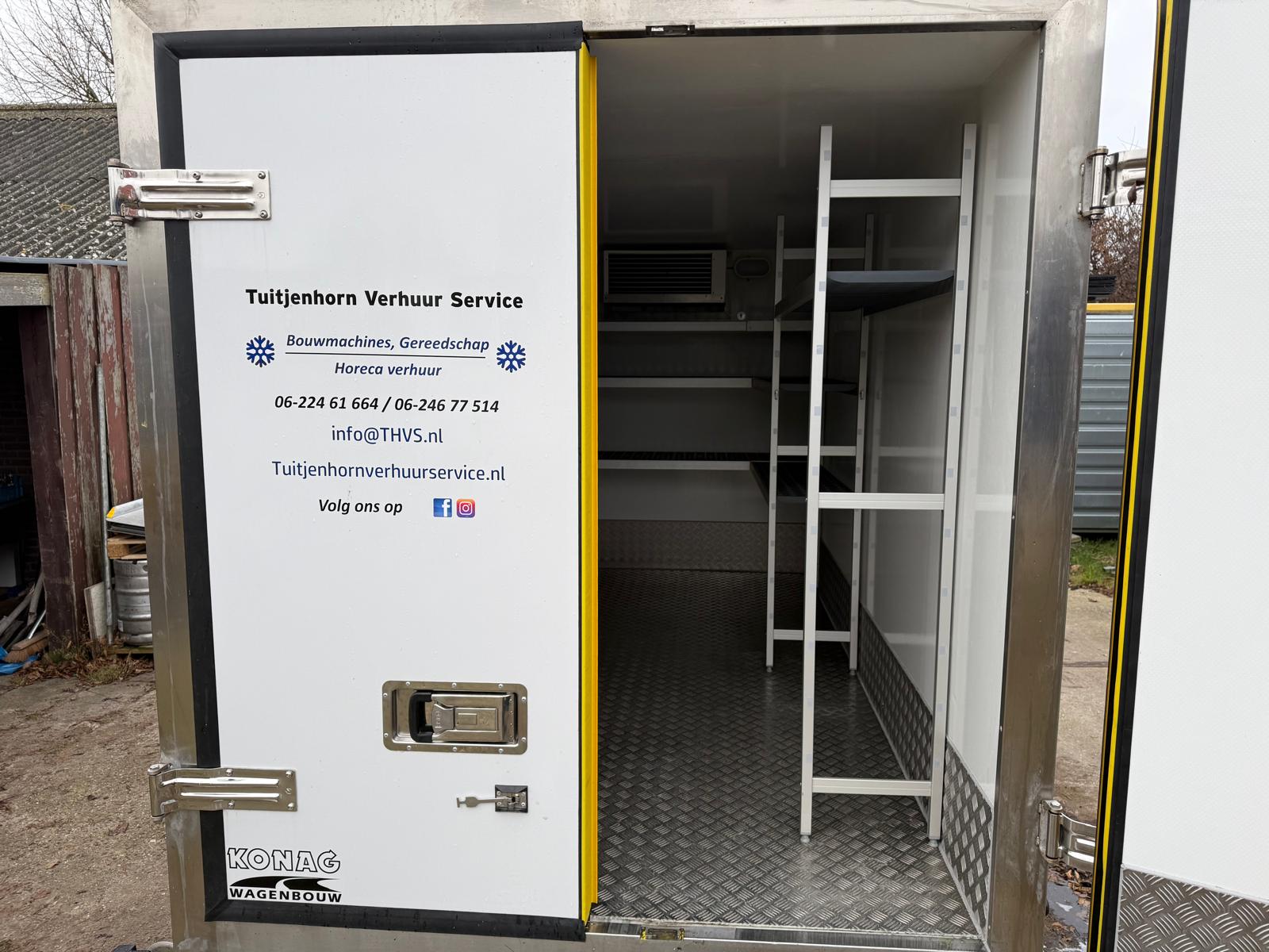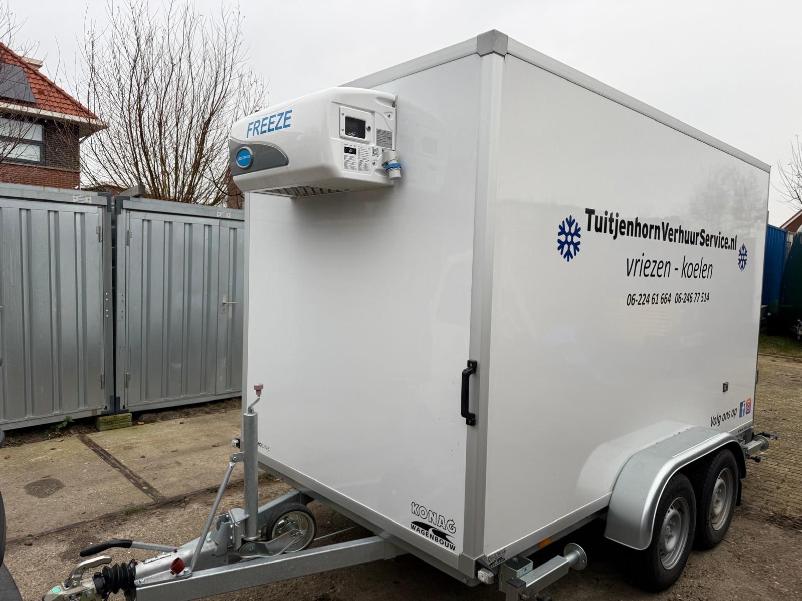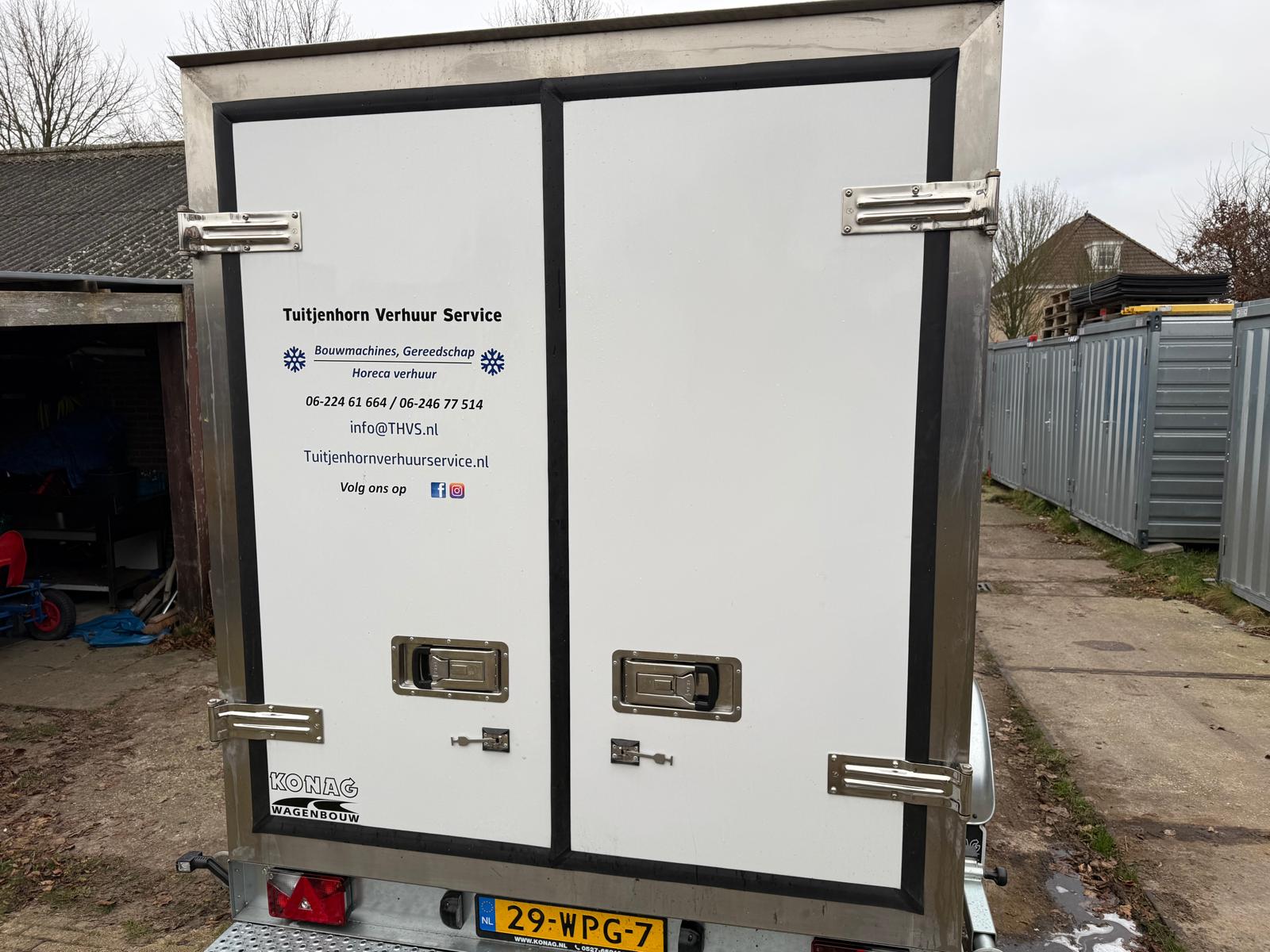 Deze tandemas vriesaanhangwagen 350x180x190 cm. De vriesaanhanger is voorzien van een stevig stalen chassis en heeft binnen verlichting werkend op de koelmotor.  De wagen zelf weegt slechts 725 kg. De geïsoleerde opbouw met een wanddikte van 100 mm en de geïsoleerde achterdeuren voorzien van 4 afdichtingsrubbers zorgen voor goede tempreratuur controle. De temperatuur is makkelijk zelf af te stellen tussen de -20 en +10 graden Celsius